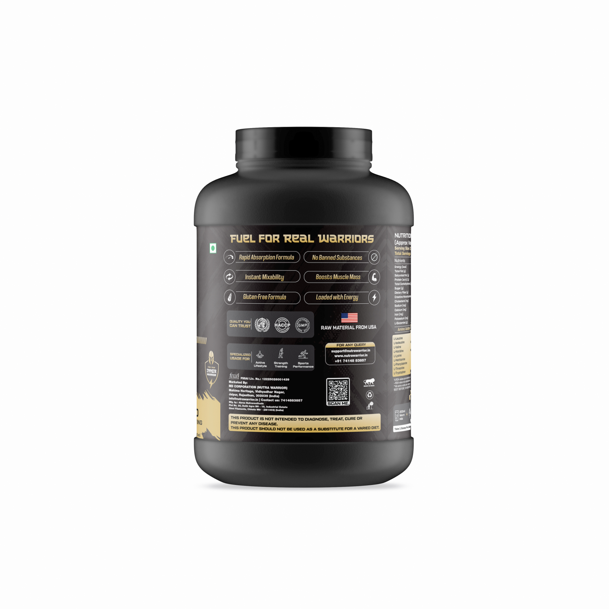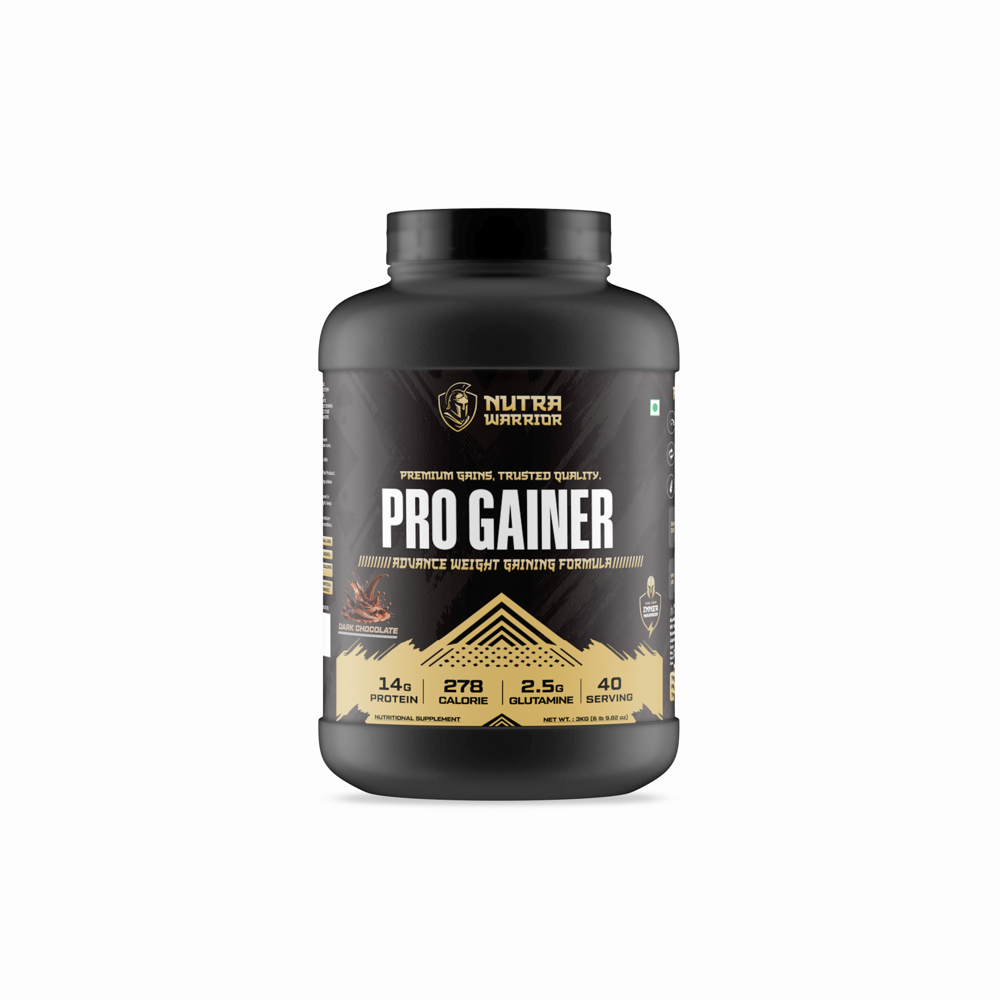 Achieve serious size and strength with Nutra Warrior Pro Gainer, a premium weight gainer formula designed for lean mass, recovery, and energy. Each serving delivers 14g protein, 278 calories, 2.5g glutamine, and essential carbs, making it the perfect supplement for hard gainers, athletes, and bodybuilders. Fortified with amino acids, vitamins, and minerals, Pro Gainer helps boost calorie intake, improve recovery, and promote muscle growth. With high-quality raw materials imported from the USA, this gluten-free formula is safe, effective, and designed for warriors who want to build powerful physiques.